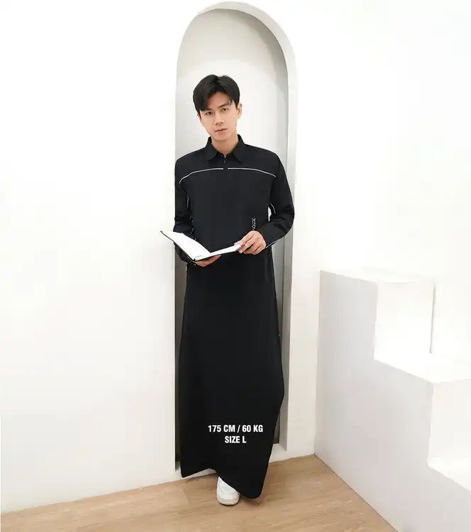 Jubah / Gamis Pria Premium – Signature Piping | Slim Silhouette | UV Protection