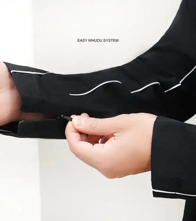 • Membantu menahan lipatan gamis agar tetap stabil saat berwudhu