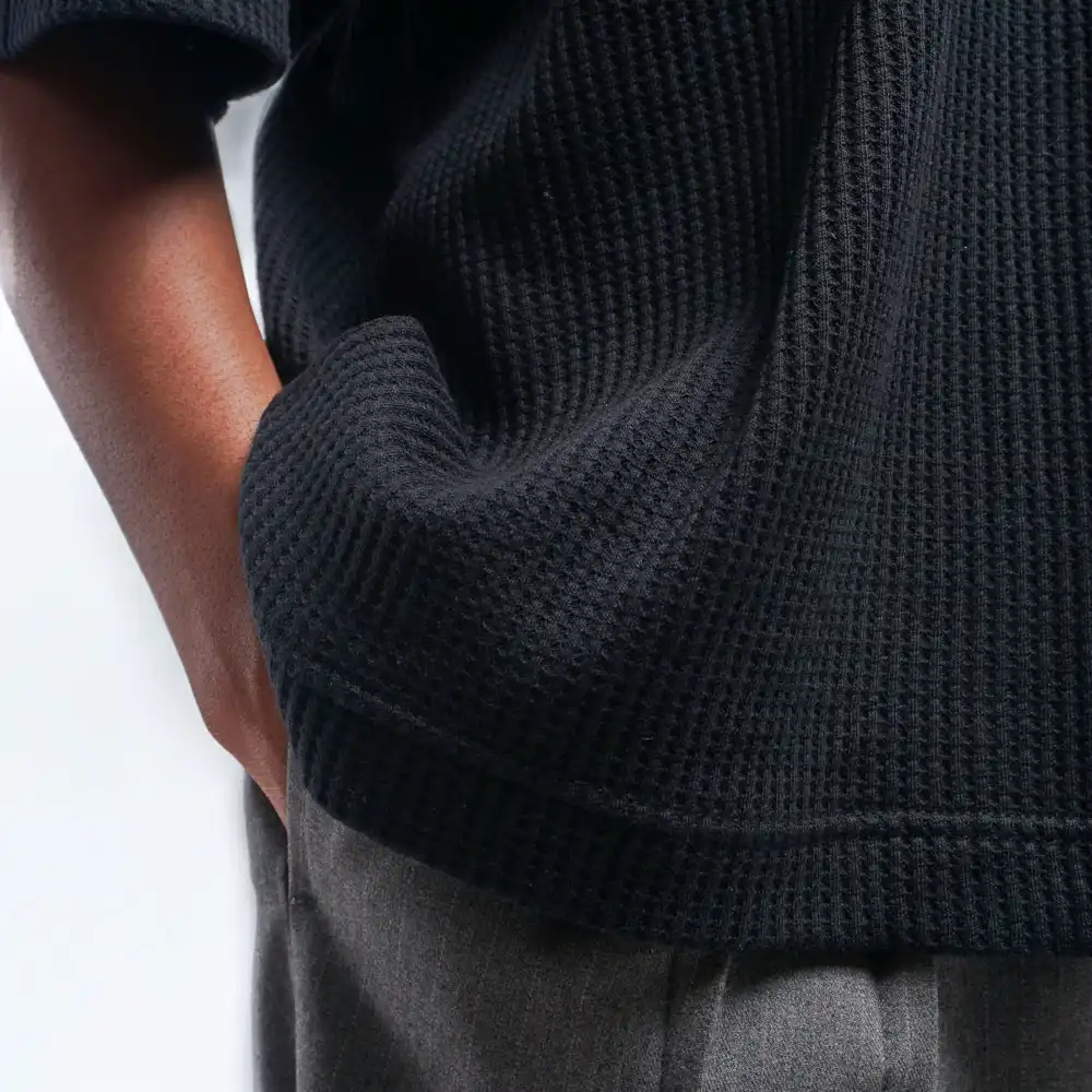 Crop Boxy Oversize Waffle Revere Polo Shirt