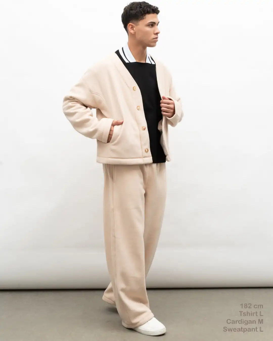 Relaxed Boxy Cardigan ini dirancang dengan potongan boxy dan oversize, memberikan siluet lebar yang effortless dan modern, ciri khas gaya anak muda yang suka tampil simple tapi tetap standout.